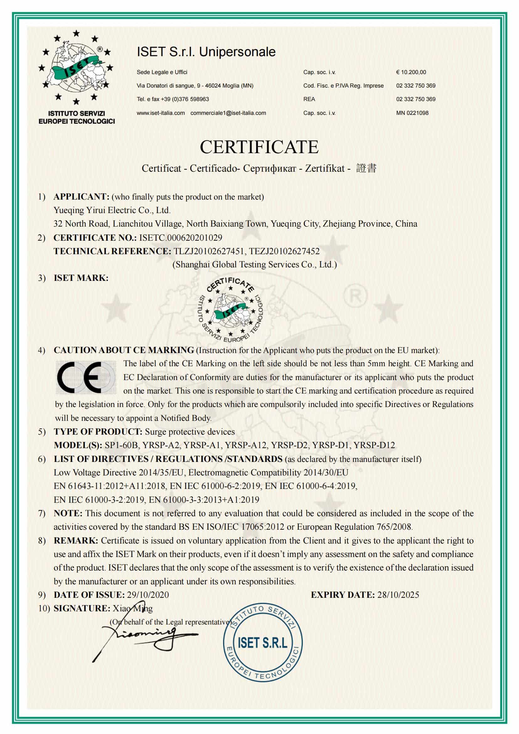 Weźmy na przykład YRO-ich urządzenia o błyskawice uzyskały certyfikat CE i przestrzegały standardów IEC 61643-11, zapewniając, że spełniają międzynarodowe wymagania bezpieczeństwa i wydajności.